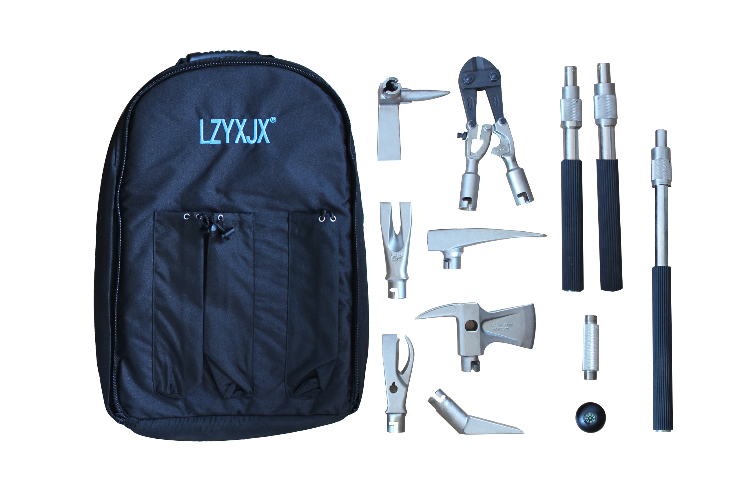 - 产品描述:组合式手动破拆工具包含破拆斧、剪钳、起钉器、金属切割器、十字撬、小撬角、大撬角、 木工锯、金属锯、对接杆、指南针、长杆、短杆等工具。